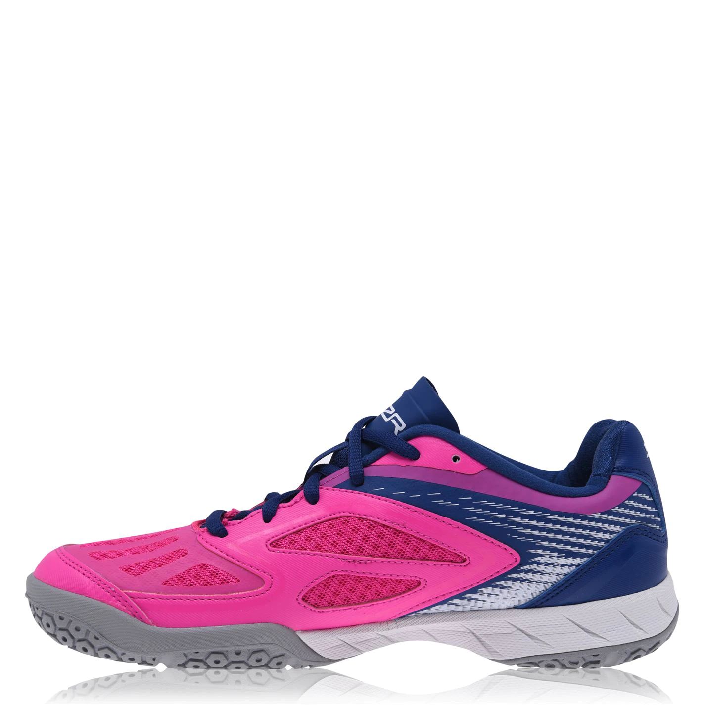 Add to your little ones trainer collection with these Slazenger Velocity Netball Trainers. Crafted with a low top and a lace up closure, these shoes feature a rounded toe and a padded ankle collar for a comfortable fit. Finished with a synthetic and mesh upper for breathabilty and flexibility when on the court. Complete with Slazenger branding and a moulded grip sole.